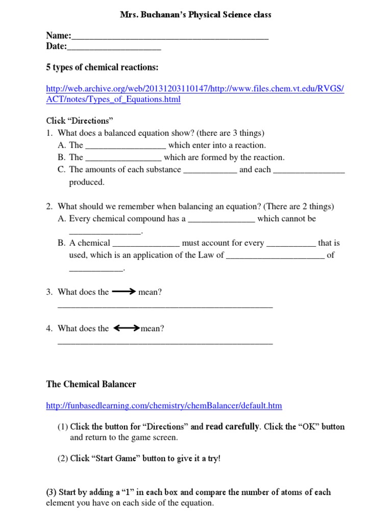 Balancing chemical equations worksheets with answers science to print gs of math 6th free printable activities for kids cbse grade 4 practice 3. 1) zinc and lead (ii) nitrate react to form zinc nitrate and. While balancing the reactions, the number of atoms on each side is presented as visual, histogram, and numerical data. Types of reactions and balancing equations. All equations need to be balanced to conform to two conservation laws.